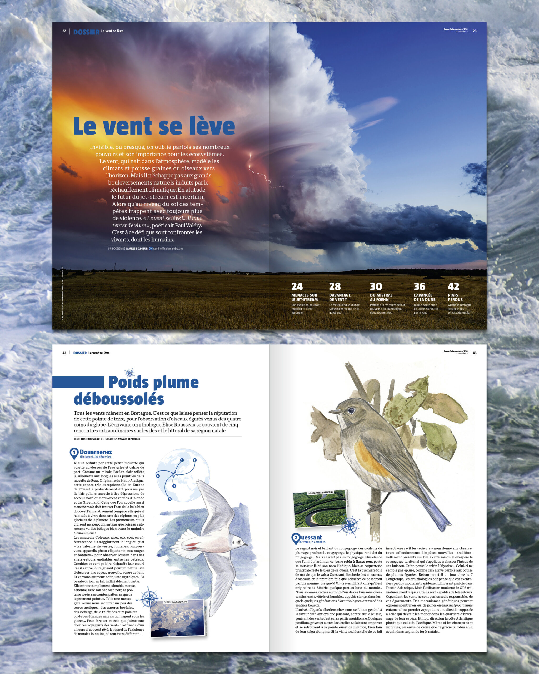 « La Salamandre » a invité des spécialistes pour mieux comprendre différentes composantes d’un élément invisible mais omniprésent sur Terre : le vent. Que sont les jets-streams ? Alizé, bise, mistral, trame, autan : quels sont les vents qui nous survolent ? Y’a-t-il des vents qui rendent fou ? Sans vent, pas de dune du Pilat ? Qui sont ces oiseaux égarés qui, poussés par les vents, atterrissent sur le littoral breton ? Autant de thématiques à découvrir dans ce dossier de 26 pages !